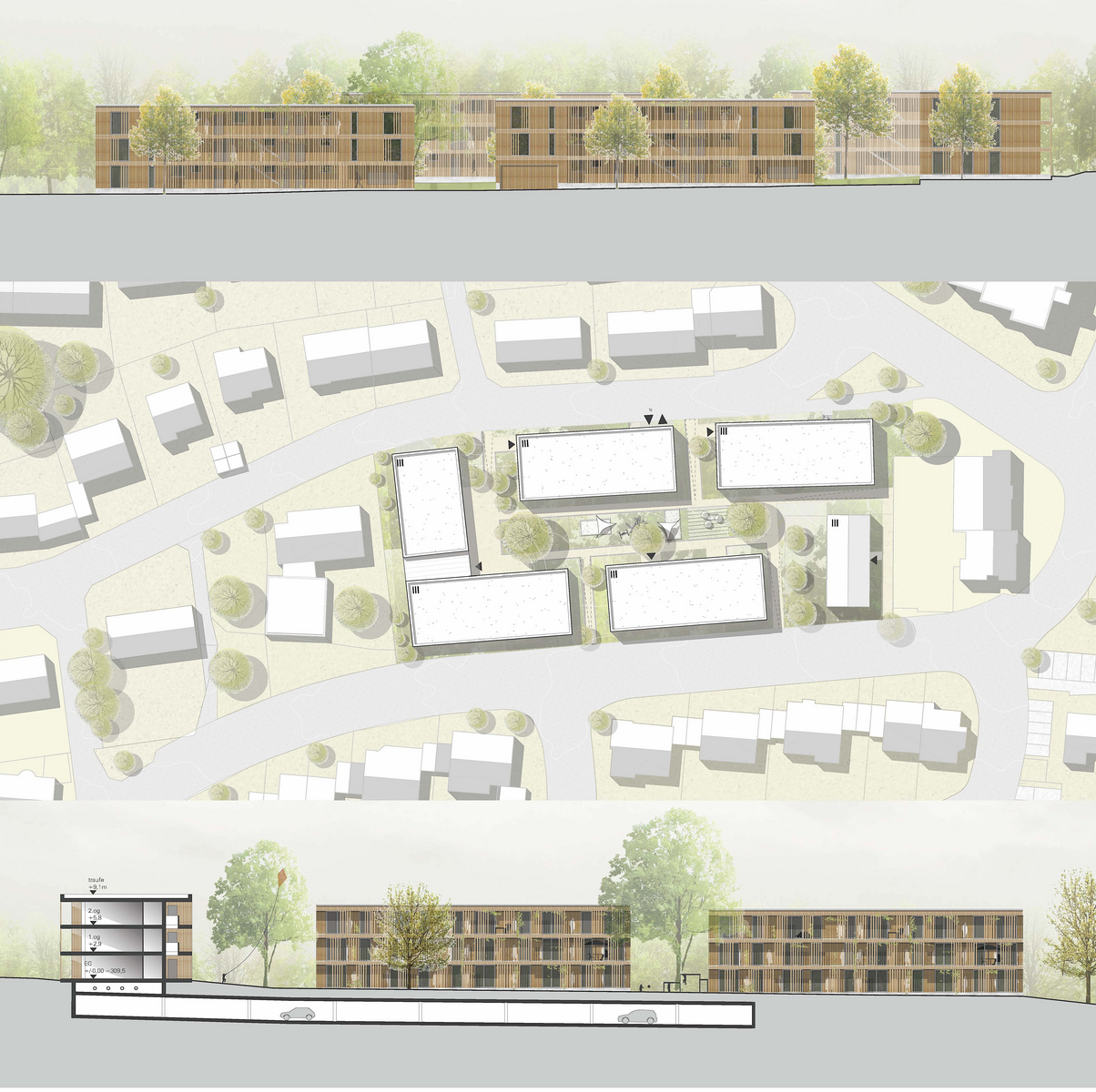 Beim Realisierungswettbewerb "Neubau Wohnbebauung, Fellbach" gewinnen wir nach der Überarbeitung den 1. Preis!