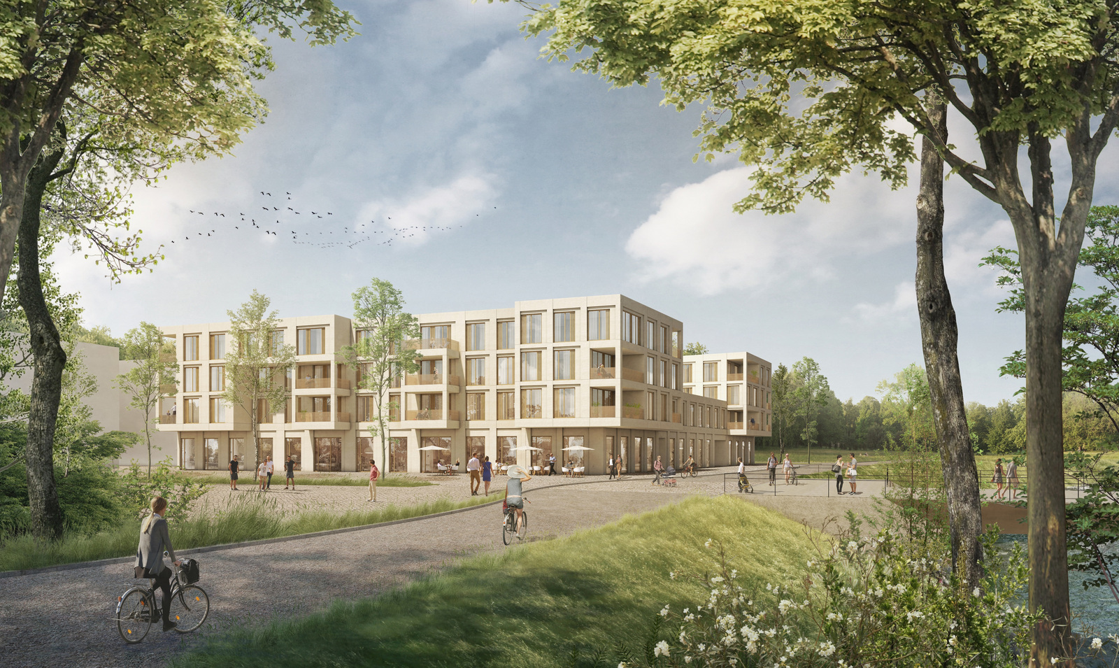 Beim Realisierungswettbewerb "Urbanes Leben am Papierbach" Baufeld B3 – Wohnbebauung mit Kindertagesstätte auf dem Gelände der ehemaligen Pflugfabrik in Landsberg am Lech – gewinnen wir den 3. Preis!