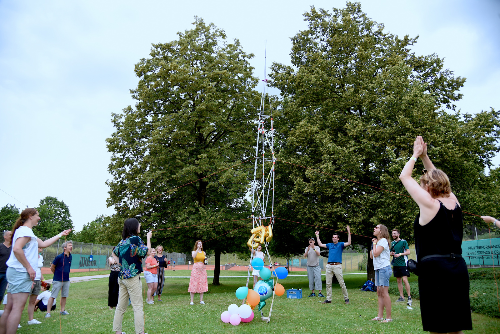 Diszplin 5: jede Gruppe musste einen Turm bauen, umso höher desto besser - aber nicht nur die Größe sondern auch die Schönheit zählte! Unsere Gewinnergruppe zeigte, wie man mit Bravour den höchsten Turm aus Meterstäben bauen kann!