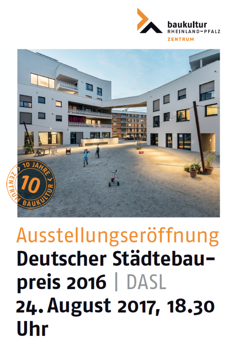 Am 24. August 2017 lädt das Zentrum Baukultur Rheinland-Pfalz zur offiziellen Ausstellungseröffnung des "Deutschen Städtebaupreises 2016" ein. Julius Klaffke spricht über unser ausgezeichnetes Projekt wagnisART.