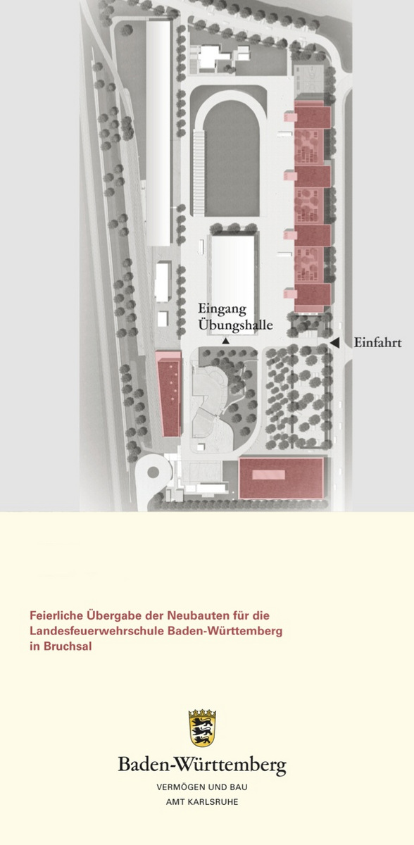 Am Dienstag, 25. Juli 2017 findet die feierliche Übergabe unseres Gebäudes 1 - Neubau Werkstätten und Wohnen - für die Landesfeuerwehrschule Baden-Württemberg in Bruchsal statt. Insgesamt sind drei neue Gebäude entstanden.