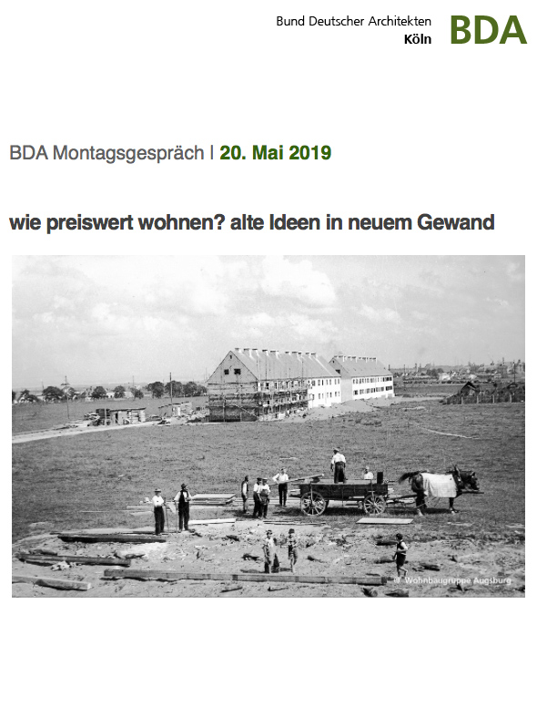 BDA Montagsgespräch - wie preiswert wohnen? alte Ideen in neuem Gewand