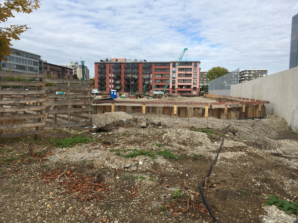 Die letzten Spundwände werden gesetzt und der Bagger rollt an in der Hanauer Straße...