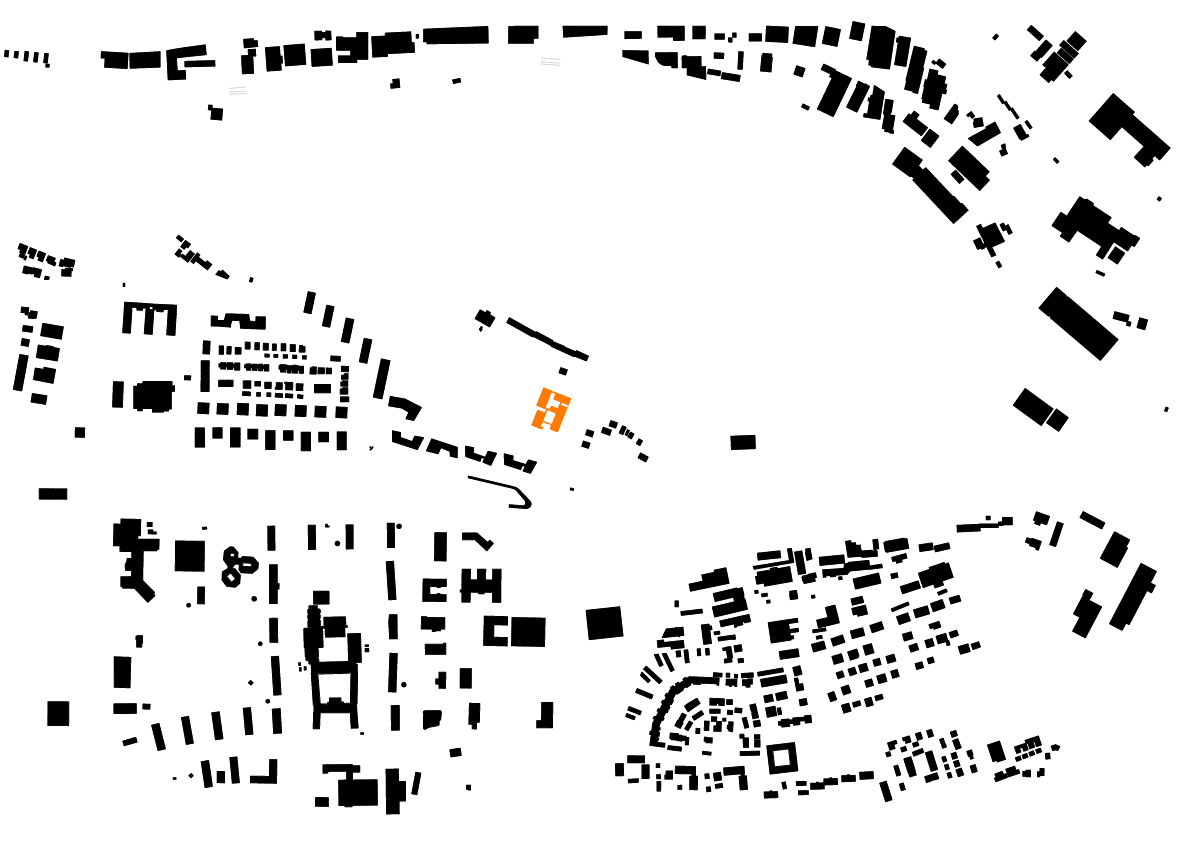 Die Planung sieht 4 drei-geschossige Mehrfamilienhäuser vor, die sich ähnlich einer offenen Blockrandbebauung im Westen, Norden und Osten um das Grundstück gruppieren. Drei Häuser sind als Holzbau geplant, ein Gebäude aufgrund der Gebäudeklasse als Holzhybridbau.