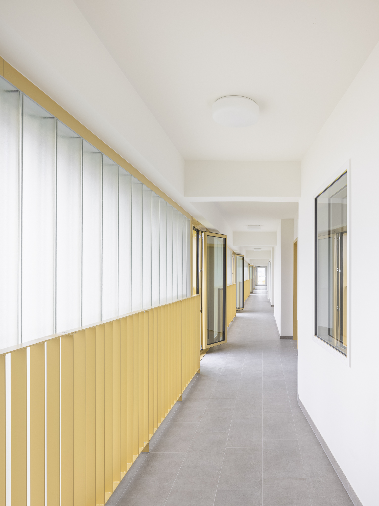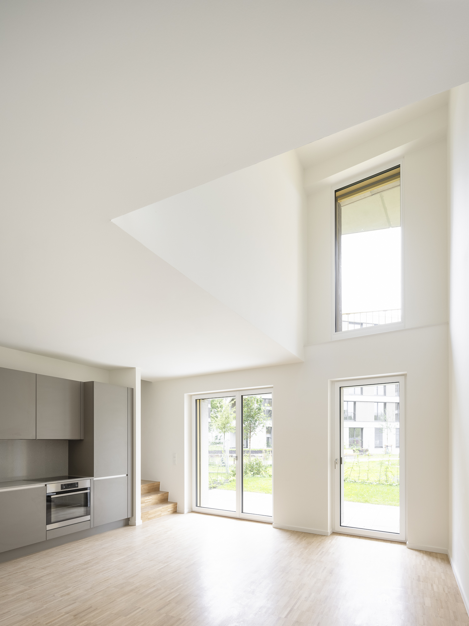 Insgesamt entstehen 145 Wohnungen, die ein breites Spektrum an Wohnformen abdecken – von Kleinstwohnungen über familiengerechte Grundrisse bis hin zu Maisonetten. Helle, polygonal geformte Treppenhäuser mit zentralen Lichtaugen bieten einladende Erschließungszonen. Die Anlage ist insgesamt barrierefrei konzipiert; ausgewählte Wohnungen sind vollständig barrierefrei gestaltet und ermöglichen komfortables, altersgerechtes Wohnen.
