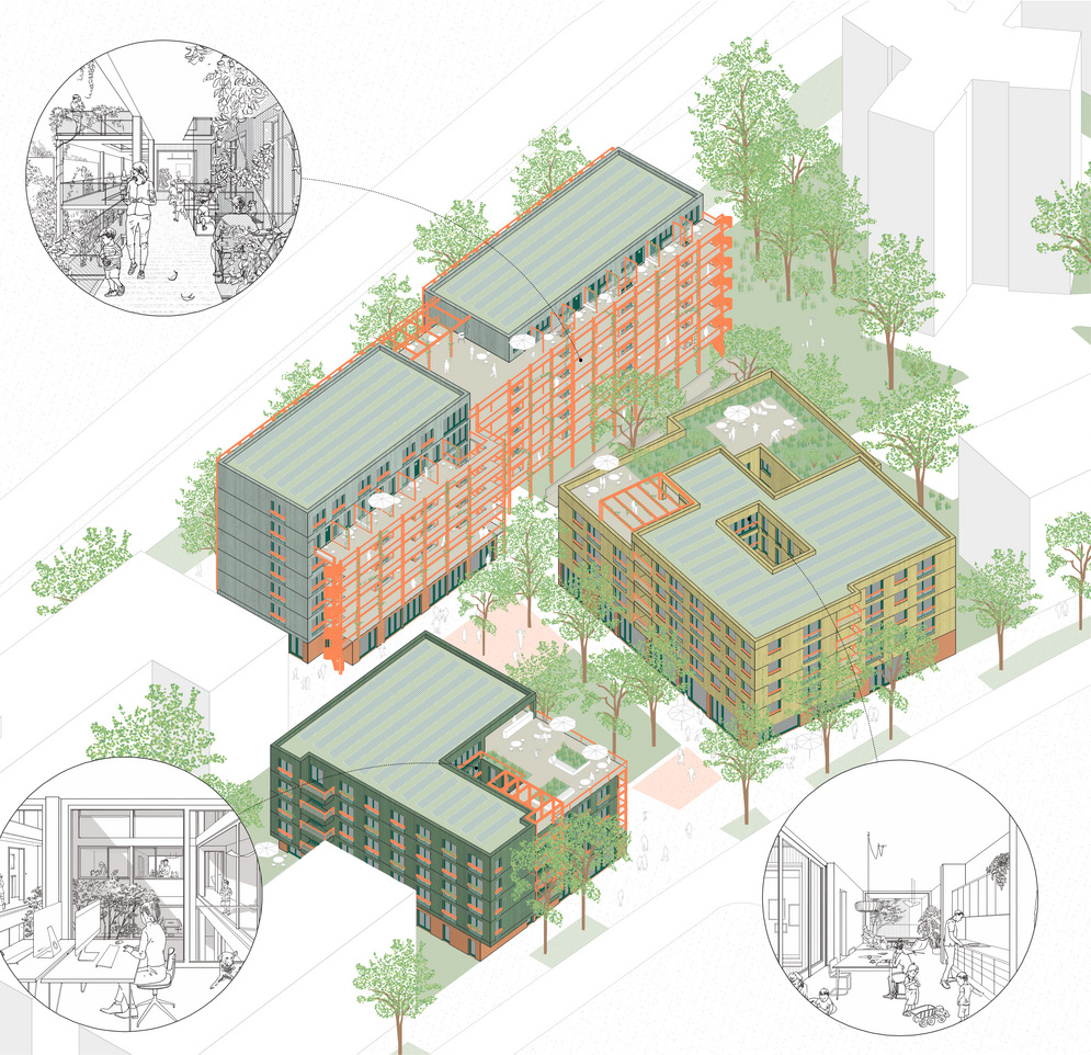 Jedes der drei Häuser erhält eine gemeinschaftsfördernde Erschließungsstruktur sowie lebendige,