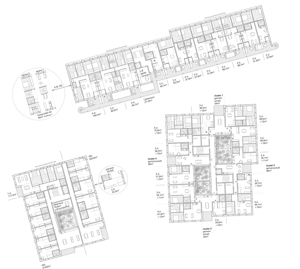 Wohnung und elf XS-Wohnungen angeordnet. Die kleinen Einzelapartments können zu großen XL-